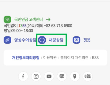 국민연금 고객센터 전화번호로 연결이 어려울시 채팅상담을 눌러보세요 채팅 상담으로도 문의가 가능합니다