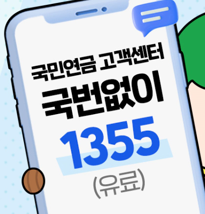 국민연금관리공단 전화번호는 국번없이 1355 입니다