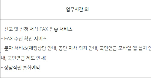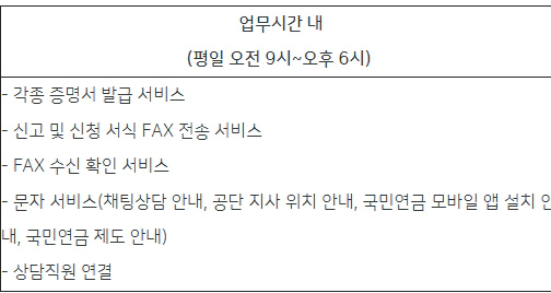국민연금 고객센터 서비스는 업무시간 내 그리고 업무시간 외 시간에 따라 업무서비스가 달랍니다